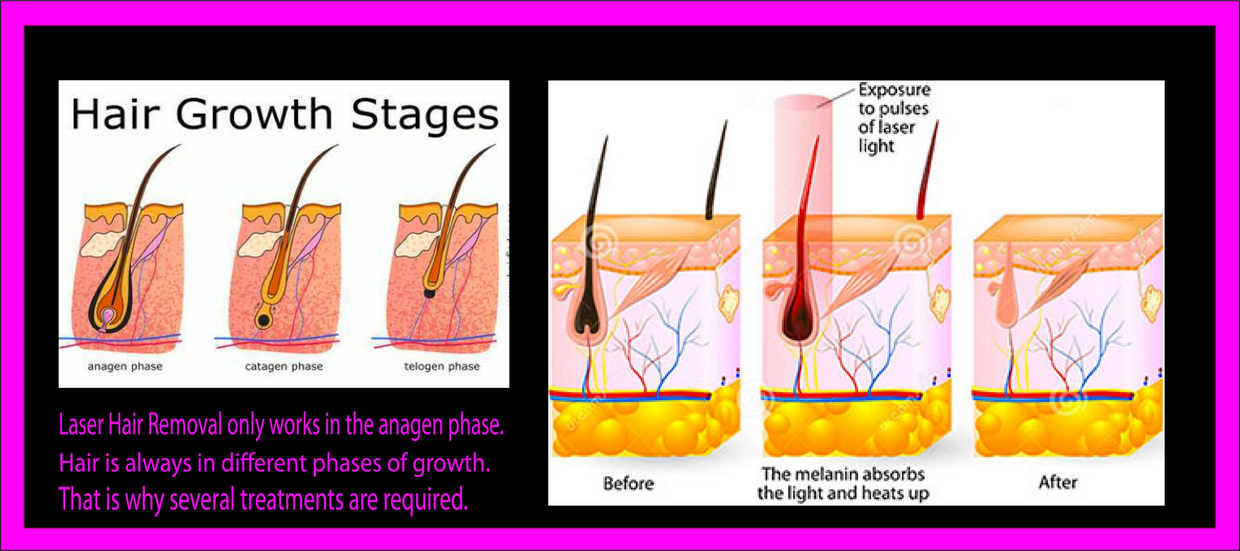 Laser Hair Removal - Doctor V. from www.doctorv.ca Laser hair removal sessions with cynosure® elite+™ send waves of safe and effective laser energy deep down into your hair follicles. This can cause redness and bumps like ingrown hairs, as your body will push the hair out of the follicle. Typically, the process of laser hair removal can take around six months with appointments every four to six weeks. Laser hair removal is different from any other type of hair reduction. T he hairs in the follicles will eventually be push out and shed, these are called laser hair removal pepper spots. You'll need 6 to 9 laser hair removal treatments for optimal results. Don't pluck hairs as this can actually stimulate hair growth and ruin the effects of the laser treatment you paid for. After the hairs have fallen out from the first laser hair removal treatment, the client will typically enjoy completely smooth and hair free skin for a couple of weeks, until new hairs start to grow in.